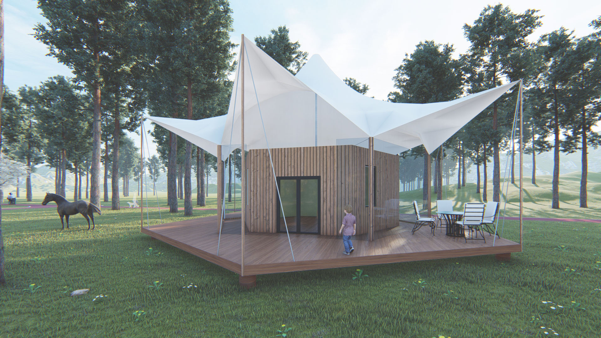 1 层、 1 卧室、 1 厅、 1 卫生间、 1 露台、 车库、
