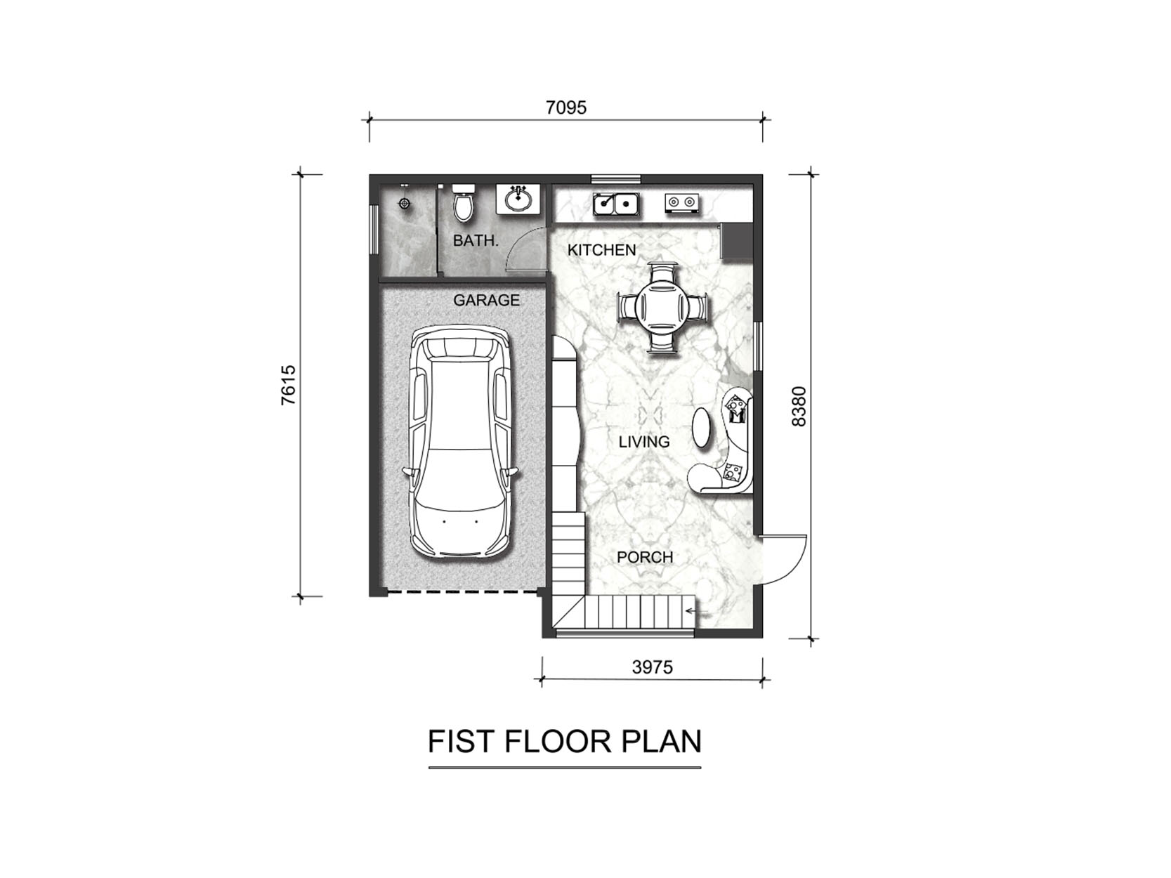 PLAN 6467 的基本信息 尺寸 宽 7.1m 深度 8.4m 面积(㎡) 1楼 57.1㎡ 占地面积 57.1㎡ 总建筑面积 114.2㎡ 高度(m) 1楼 2.4m 二楼 2.5m 总高度 5.8m 每户 楼层 X2 卧室 X2 客厅 X2 浴室 X2 露台 X0 车库 X1 阁楼 X1
